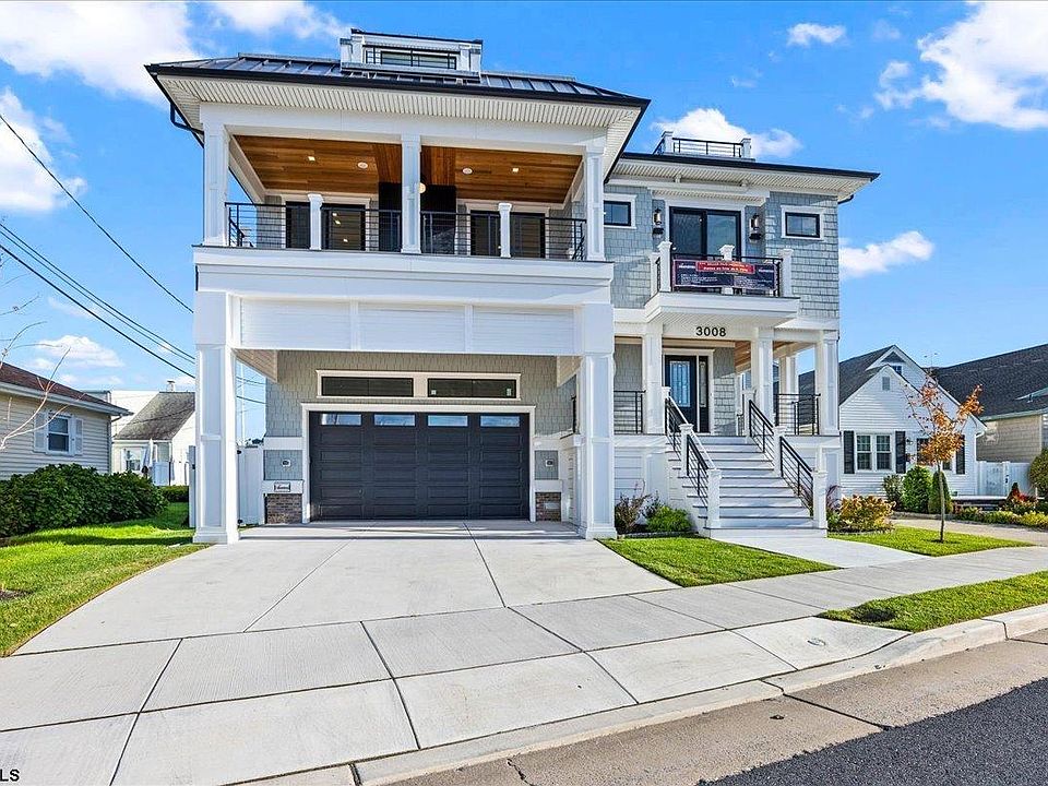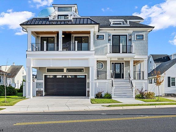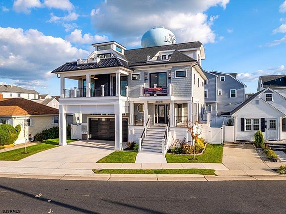 LONGPORT LUXURY LIVING!! Welcome to this breathtaking new construction custom-built residence nestled in the exclusive Longport enclave. Designed and curated in partnership with Surroundings Interiors, this home exemplifies refined coastal luxury through its exceptional craftsmanship, sophisticated finishes, and thoughtful attention to detail.  The first floor welcomes you with a beautiful foyer leading to a stylish den with a custom fireplace and wet bar. Steps from the den open to the backyard, creating an ideal flow for entertaining. A private bedroom and full bath make this level perfect for guests.  The second floor unveils an impressive open-concept living space, designed for both elegance and comfort. The gourmet kitchen, anchored by a striking center island, features Sub-Zero refrigeration, Wolf appliances, and impeccable custom finishes. A custom fireplace, built-in bar, and designer powder room elevate the atmosphere, while the windows flood the space with natural light. Step through sliding glass doors to a covered deck with an outdoor fireplace, creating a seamless indoor-outdoor flow ideal for entertaining in any season. Three beautifully appointed guest suites, each with a private en-suite bath, complete this exceptional level.  The top floor is dedicated to the primary suite, a private sanctuary offering a spa-inspired bath with steam shower, a lounge or sitting area, and two separate decks—one directly off the bedroom and another off the den—providing spectacular water views and a tranquil retreat.  Additional highlights include an elevator servicing all three levels, a two-car attached garage, and LVT flooring throughout. The outdoor spaces are equally impressive, featuring multiple large decks, a fenced-in private backyard, and a large in-ground pool—perfect for entertaining, barbecues, and pets.