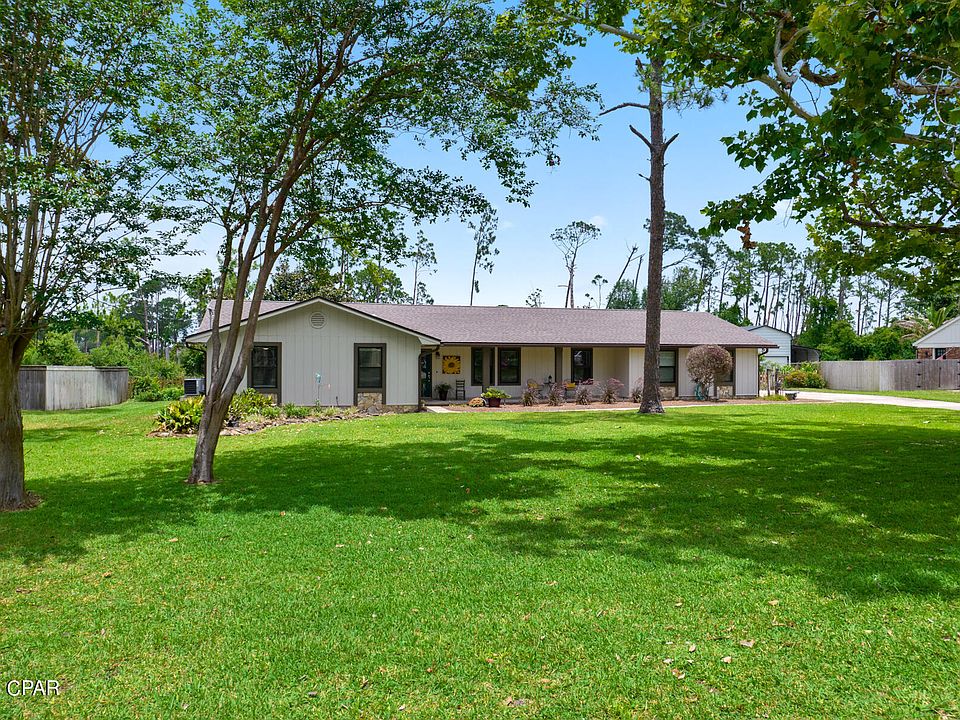 **CURRENTLY UNDER CONTRACT, SELLER WILL CONSIDER BACKUP OFFERS**Beautiful 4 bedroom/2.5 bathroom home in desirable (and quiet) Kingspoint! This stunning home, which sits tucked away on a cul-de-sac, has been renovated from top to bottom. The curb appeal of this home can't be beat, featuring huge trees, a lush green lawn, well-kept landscaping, and a front porch that spans nearly the entire front of the home! Exterior improvements to this classic ranch home include a new roof (2018), all new windows and doors (2020), new water heater (2018), privately owned water softener (2019), new porch screens (2020), new storage shed roof and siding (2020), and paint (2020). Interior improvements include a new high efficiency HVAC system (including ductwork throughout, 2020), recessed lighting (2020), paint (2020), LVP flooring throughout (2020), remote controlled ceiling fans, full master bath remodel (2020), and a full kitchen remodel (2021). This light and airy home has two living spaces--a formal dining room that includes a cozy sitting area at the front of the home, and an open concept kitchen/family room with beamed vaulted ceilings and a decorative stone fireplace! The fully remodeled kitchen boasts custom soft-close cabinetry, quartz countertops, stainless steel appliances, a coffee bar, glass floating range hood, a breakfast nook with a bay window overlooking the pool, and much more! The large laundry room, which is plumbed for a soaker sink, has plenty of storage, extra space for a deep freeze or mudroom bench, and a lovely half bath. The tranquil master bedroom has a large walk-in closet, and french doors leading out to the screened porch. Enjoy the phenomenal Florida weather year round in the oasis that is this home's backyard--complete with a massive screened porch, large in-ground pool, an array of plants, and mature trees. This home has great storage space throughout, as well as a two car garage, newly built shed in the backyard, and extra parking in the driveway for a boat or camper. Great central location close to shopping, entertainment, restaurants, public boat ramps, Florida State University PC, Gulf Coast State College, and our beautiful Panama City Beaches! Don't let this Kingspoint beauty pass you by!