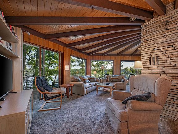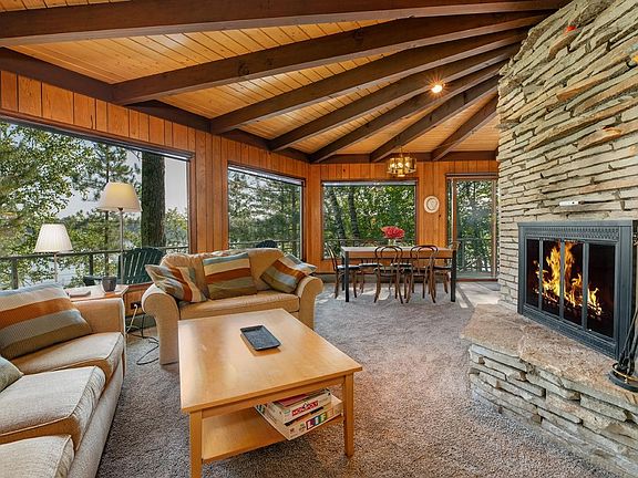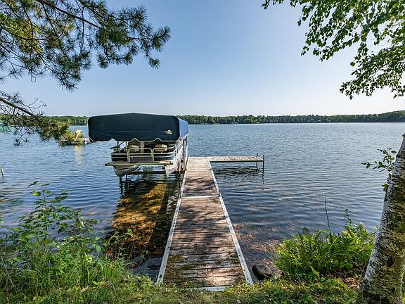 Located on Crescent Lake (628 acres) this 3-bedroom 2 full bath house with 2 car attached garage is available to enjoy. There is crystal clear water for swimming and a level area at the shoreline for a firepit, patio furniture and a game of bags. The entry has slate flooring and a nice coat closet for your guests. The views are so very beautiful with the large windows overlooking the lake in the living room and dining room. There is a stone wood burning fireplace to cozy up the room on cool evenings. The galley style kitchen has plenty of room with countertops, new gas stove top, & cabinets for storage. There are two lakeside bedrooms on this level. The largest one has a patio door to the lakeside deck. The full bathroom completes this level. The walk out lower level has a lakeside bedroom, Full bathroom needing a vanity & sink, large fun family room with fireplace and bar. This area walks out to the lakeside deck and down a few steps to the level frontage lakeside.