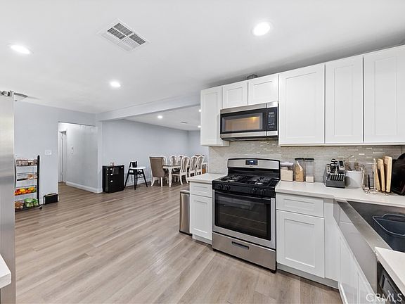 Welcome to this inviting 5-bedroom, 3-bathroom home with added Studio Apartment, offering 1,945 sqft of comfortable living space perfect for a large or growing family. Step into the spacious and open family room, where natural light pours in, highlighting the modern touches that give this home a contemporary feel. The kitchen is a chefs delight, featuring quartz countertops and a seamless connection to the dining area and family room, making it ideal for entertaining. The master suite is a true retreat with its own sunroom, perfect for relaxing with a book or enjoying a morning coffee. Each of the additional bedrooms is well-sized, offering flexibility for family, guests, or even a home office. The light color palette throughout creates an airy ambiance, enhancing the homes bright and welcoming atmosphere. Where the garage once was, is a Junior (Junior Dwelling Unit) Studio which included kitchen, and plumbing for additional bath. This property offers great potential for rental income or a private guest suite. With the right offer, seller would be willing to covert the JDU back into a garage. Located just minutes from the freeway, this home combines convenience with comfort, making it a must-see! Want to keep Studio apartment and later add back garage, the front of property offers opportunity to build stand alone garage storage.