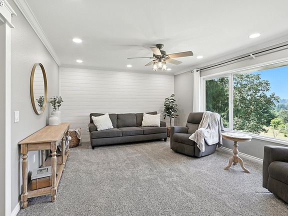 Welcome to this spacious 4-bedroom, 2.5-bathroom daylight ranch, perfectly situated on a gently sloped 4.93-acre lot in the charming town of Estacada, Oregon. This home offers the perfect blend of comfort, functionality, and outdoor potential for those seeking a little more space. The main level features three bedrooms, a large living room with stunning tree views, and a kitchen designed for convenience with an appliance garage and eat bar. The primary suite is located on the lower level with its own separate entrance, offering privacy and flexibility—perfect for multi-generational living or a private retreat. A large bonus room provides endless possibilities for hobbies, activities, or additional living space. Step outside to enjoy the covered porch overlooking the acreage or relax on the covered patio. The expansive lot is ideal for entertaining, gardening, or creating your dream outdoor space. The property also includes a dog run, an outbuilding, and mature fruit trees—four apple, two cherry, and two pear trees—offering both beauty and the opportunity to enjoy fresh, homegrown fruit right from your own yard. Located in Estacada, you'll enjoy the tranquility of small-town living while being close to the beautiful Clackamas River, perfect for fishing, kayaking, and outdoor adventures. Known for its scenic beauty and recreational opportunities, Estacada is a haven for nature enthusiasts.