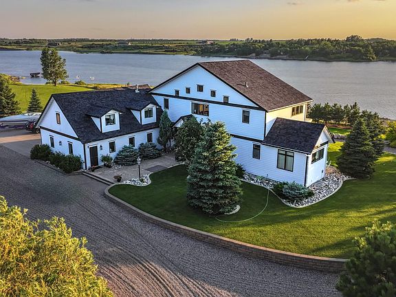 Seller will consider contract for deed! Welcome to this stunning lake home on Jamestown Reservoir, offering breathtaking panoramic water views throughout. This exquisite residence features 4+ spacious bedrooms and 5+ luxurious bathrooms. Upon entering, you'll be greeted by soaring ceilings and a grand staircase. The gourmet kitchen, a chef's dream, includes two top-of-the-line ovens, a high-end gas cooktop, and a large, beautiful granite island, with a naturally lit, inviting dining room adjacent. A charming double-sided gas fireplace warms both the oversized living room and the cozy den. The main floor also includes a versatile non-conforming bedroom near a 3/4 bathroom, perfect for an office or extra guest room. Upstairs, discover a stunning primary bedroom with vaulted ceilings, a double-sided fireplace, a private balcony, and a newly remodeled, luxurious full bathroom. Two additional bedrooms with lofts share a full bathroom. The fully finished basement offers an expansive recreational room for entertaining or movie nights, along with a comfortable bedroom and a full bath. The 3-stall garage features heated floors, a convenient mudroom with a shower, a functional workspace, built-in cabinets, a mini split for optimal climate control, and extra storage. Above the garage is a large bonus room with additional living quarters, another double-sided fireplace, a 3/4 bath, a built-in king-size bed, and ample counter and cabinet space. Outdoors was made for entertaining on warm summer nights. Invite guests over to enjoy the spacious main patio with a built-in BBQ gas grill, a rustic wood-burning fireplace, and pick fresh flowers or vegetables from the raised bed. The outdoor stairs lead to a lower patio with built-in seating and a fire pit for roasting s'mores or take the grand outdoor staircase towards the lower acreage with easy access to the water where you can enjoy recreational sports from boating, swimming, fishing and kayaking. Overall, this home offers a lifestyle for those seeking a peaceful retreat with spectacular lake views. It's the perfect place to spend your summer on the water, entertaining guests, or simply enjoying the natural beauty of the area. This extraordinary home is perfect for enjoying the best of lake living.