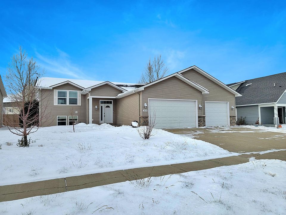 The home that has it all - a prime location in North West Minot, close to the new High School and minutes away from Minot Air Force base.  This contemporary 5-bedroom, 2.75 bath split foyer, attached 3 car garage, and a rare maintained spacious lot with privacy and fully fenced backyard is a sight to behold. Stepping inside you’ll notice the grand foyer welcoming you. The main level features an open layout with massive living area, dining room, and kitchen with elevated ceilings. The kitchen has stainless steel appliances, including gas range and a large island perfect for entertaining guests. The sliding doors off of the dining area overlooks a tri-leveled deck, fenced in backyard, flourishing trees, and planter beds on the side - a joyful display of summer festivities await!  Also on the main floor you will find the primary suite with a large closet and en-suite bathroom with dual sinks. Finishing the main floor are 2 additional bedrooms with ample closet space and another full bathroom. The lower level features a cozy family room with wet bar and fridge.  In addition are 2 egress bedrooms, a bonus area with barnyard style sliding doors, and a very spacious laundry room.  This home has updated flooring. Schedule a private showing with your trusted realtor and take the first steps to making this stunner your next Home Sweet Home.