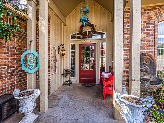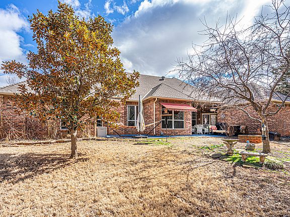 Outstanding home in Edmonds Asheforde Oaks addition! 4 spacious bedrooms, 3 full baths, 2 large living rooms. 2 Dining areas, and a 3 Car Garage. The kitchen boasts upgraded gas cooktop, Unique Glazed Cement counters, Lots of Cabinet space, Breakfast bar & Large eat in area with views of the back yard. The Master is large with a walk-in closet & access to the patio/back yard. The Master bath has double vanities, tile floor, and a spacious shower. Crown molding accents the ceiling in all the common areas and wood and tile floors are in the living, dining and kitchen along with recent carpet in the bedrooms. The Living room features Sola-Tube lighting for lots of natural light even on Dreary days. The backyard looks over woodland views and a country feel even though this east Edmond Neighborhood offers the convenience of easy access to I-35 and a short commute to OKC; close to downtown Edmond, Shopping, and Schools. There's a Storm Shelter in the garage for your safety.