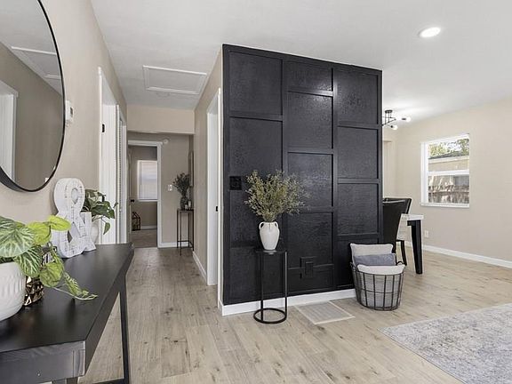 Welcome to this delightful, remodeled 3-bed, 1-bath, in Highland Park. Where modern updates meet cozy charm & style. As you enter, you'll notice the striking black feature wall, new wide plank LVP flooring, premium can lighting w/ night light feature, & fresh new paint throughout. The inviting open living area provides a great space for family gatherings & entertaining. Formal dining is a must, & the kitchen boasts modern fixtures, stainless steel appliances, stunning picket style back-splash, new cabinets, counters, all w/ a functional layout ideal for cooking your favorite meals. The primary bedroom is massive & all 3 bedrooms have walk-in closets. The additional bedrooms offer added space for your growing family or a perfect home gym or office. The full bath is tastefully updated with contemporary fixtures, even a bath vent/light with blue-tooth speaker! Enjoy outdoor living, including a covered front porch, freshly landscaped front yard, & spacious rear yard. Notable updates include: New roof, gutters, windows, furnace, plumbing, water heater, electrical panel & wiring, updated sewer line, brand new water tap & water line to the home, all interior fixtures, doors, tile, cabinets, flooring, trim, interior & exterior paint. Its basically a BRAND NEW HOME! Conveniently located just minutes from schools, restaurants, shopping, & the Colorado State Fairgrounds. Commuting is a breeze w/ easy access to major roads and public transportation. This home is PERFECT!