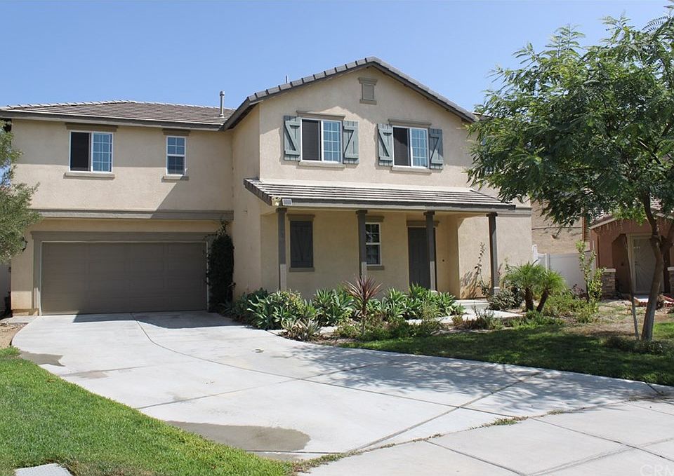Beautiful Home, on a Large Quarter Acre Lot! Downstairs entry opens to a wide-open Great Room and Living Area with Guest Bathroom. Modern Kitchen features Darkwood Cabinets, Granite Countertops with Breakfast Bar and Whirlpool Appliances. A Large Indoor Laundry Room and Spacious Pantry with plenty of Storage. Upstairs features 4 Large Bedrooms (three with Walk-in Closets), including a Master Suite featuring an En-Suite. An Upstairs Loft serves as an additional family retreat. Window Coverings and Ceiling Fans throughout and a two Car Attached Automatic Garage. An Enormous Backyard features a Fully Irrigated Hillside with Spectacular Views and a Large flat open area with plenty of room for a pool. Front Yard has been fully finished with Low-Maintenance Landscaping, Automatic Sprinklers and Long Driveway with room for parking and a Charming Front Porch.