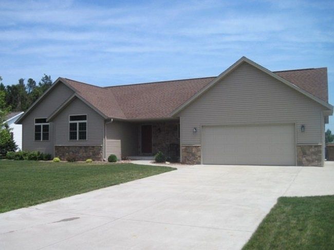 Open concept with cathedral ceilings, gas fireplace, oak hardwood flooring in kitchen, dining, living room area. Kitchen features maple cabinets, stainless steel appliances, snack counter with additional cabinetry. Master suite has private bath, walk in closet and an attractive tray ceiling. Mudroom/laundry room near oversized garage. Lower level space has a large family room with egress windows. 6 panel doors throughout. Concrete driveway. Underground sprinklers.