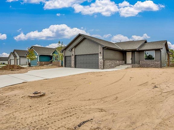 Check out this GORGEOUS new home, complete and ready for its new owner! This Aiden floor plan by Don Klausmeyer Construction sits on a beautiful lot that backs up to trees in Meadowlake Beach! DERBY SCHOOLS with lower, Wichita taxes! Just minutes from Derby, Wichita, and McConnell AFB, this open floor plan includes vaulted ceilings and luxury vinyl plank throughout the main living areas. The kitchen features an island with storage space and an eating bar, gorgeous granite countertops, a pantry cabinet, and staggered cabinets with crown molding. The master bedroom has a vaulted ceiling, two large closets, and its own bath with a shower. The full, unfinished daylight basement features interior framing for a rec room with a daylight window, a 3rd bedroom, and a 3rd bath. The back patio is covered for enjoying the outdoors rain or shine, and you can watch the deer play in the trees behind the home while you're at it! Come check it out!