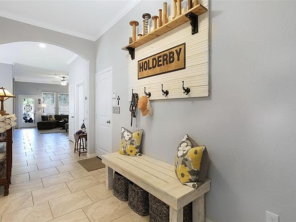 Better than new Lennar home on a peaceful cul-de-sac! Home features extensive tile flooring, crown molding, study, alarm system, water softener, whole house surge protector, 2" blinds, spacious dining area off the kitchen, great living area, art niches, and kitchen with breakfast bar, granite counters, under cabinet lighting, gas range, stainless steel appliances and walk-in pantry. The master retreat offers laminate wood flooring, garden tub, separate shower, double vanities, and walk-in closet. The exterior boasts beautiful landscaping, sprinkler system, covered porch, covered back patio with gas connection for your grill, fenced backyard, and 2 car garage with opener and epoxy flooring.
