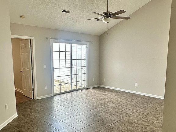 Step inside to an open and bright floor plan, featuring a vaulted ceiling that creates a spacious feel in the living, dining, and kitchen areas. This home also features new light fixtures in the living areas and laminate flooring in the bedrooms. The smart split-bedroom layout ensures extra privacy, while glass doors in the living room open onto your private patio, enclosed by a vinyl fence with an included storage area.