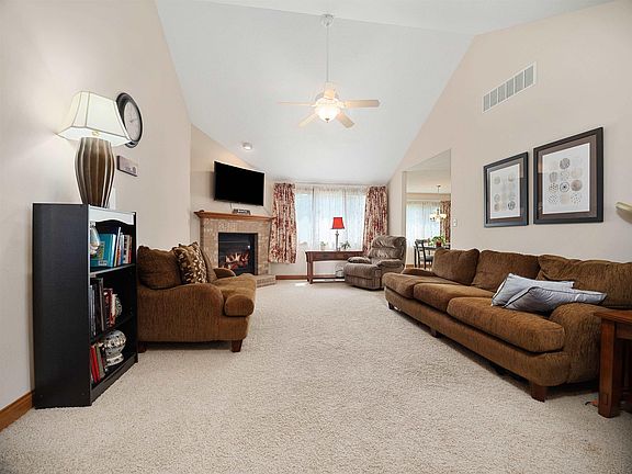 This move-in ready beauty is located just minutes from Huntertown Family Park. This artfully constructed one story ranch with a split bedroom floor plan and over 1400 sq.ft. is ready to go! Entering from the garage you find yourself in a spacious mudroom/laundry room with additional storage cabinetry. Useful and functional!The kitchen features custom hickory cabinets and plenty of prep space with additional counter seating. The floor plan offers a private master suite that impresses with a trey ceiling, large walk in closet, and dual vanity in the master bath. The ample living room with vaulted ceiling and gas fireplace, beckons comfortable entertaining and relaxation! Other features include: solid wood doors and trim throughout the home, all bedrooms have ceiling fans, wall to wall carpet, large closets and Anderson 400 series windows. The rounded corners are another upgrade amenity in this home! A scenic view backyard patio off the kitchen nook is perfect for sun and lemonade! Enjoy!