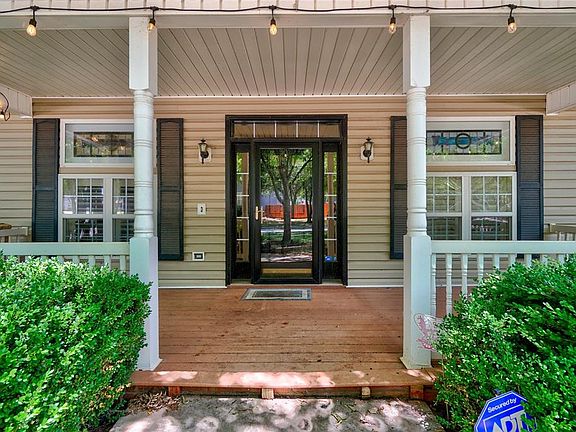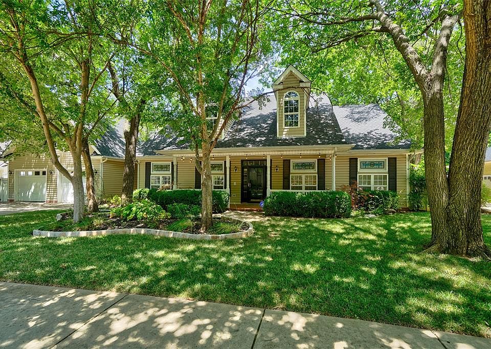 Welcome to this exquisite home in The Vineyard Addition. Nestled in a serene neighborhood, this property boasts an array of exceptional features. Upon entering, you'll be greeted by 12-foot ceilings and large bay windows in the living room, bathing the space in natural light. The living areas are designed for both entertainment and comfort, with a built-in TV entertainment center, a large gas fireplace with gas logs and a wood mantle, and more built-in shelves for displaying your treasures. The kitchen comes with granite countertops, custom backsplash, and a flat top stove and built-in microwave. Pendant lights and under-counter lighting add a touch of elegance, complementing the ample cabinet space and pantry. The dining room features a unique chandelier and canned lighting, adding to the ambiance. The master suite is a sanctuary perfect for relaxation. It includes a large walk-in closet with built-in cabinets, and a master bath featuring separate Jacuzzi tub and shower, his and her sinks, and a vanity spot. The master shower even has a convenient seating area. French doors leading to the back patio sunroom. A front study with lots of shelving and built-in canned lighting offers a quiet retreat. The second bedroom is generously sized, with 3-inch wood blinds, crown molding, and its own walk-in closet and full bathroom. Outside, the large sunroom with outdoor speakers and screened-in fans overlooks a beautiful back deck and a tranquil Koi pond surrounded by lush landscaping and shade trees. A stone walkway winds through the backyard, leading to a wrought iron back fence that borders a lovely wooded area. Security lights and an inground sprinkler system provide convenience and peace of mind. Additional amenities include custom stained glass windows at the front, an alarm system, internal sound system in the living room, and Generac generator. This home offers the perfect blend of luxury, functionality, and tranquility in a highly desirable location.
