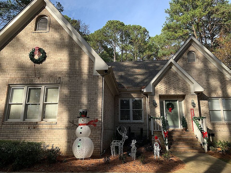 This all brick home on a large wooded lot has a view of Bass Lake and lives like a ranch with main living on the first floor and a finished second story. Hardwoods throughout first floor (minus master suite) as well as second floor bed/bonus room. This home brings in a generous amount of natural light with lots of windows and high ceilings giving it a spacious feeling. The updated kitchen includes a vaulted ceiling that includes 2 sky lights and has quartz countertops and stainless steel appliances. Master suit and two other bedrooms are downstairs. Master bath includes a frameless shower with ceramic tile surround, jacuzzi tub, ceramic tile floor, stainless fixtures and dual sink vanity. The second full bath on the first floor has had the vanity and countertop replaced, and the full bath upstairs has had the countertop replaced. The second floor boasts a large bonus/fourth bedroom with a walk in closet, 3rd full bathroom, walk in attic space, and a flex room currently being used as an exercise room.