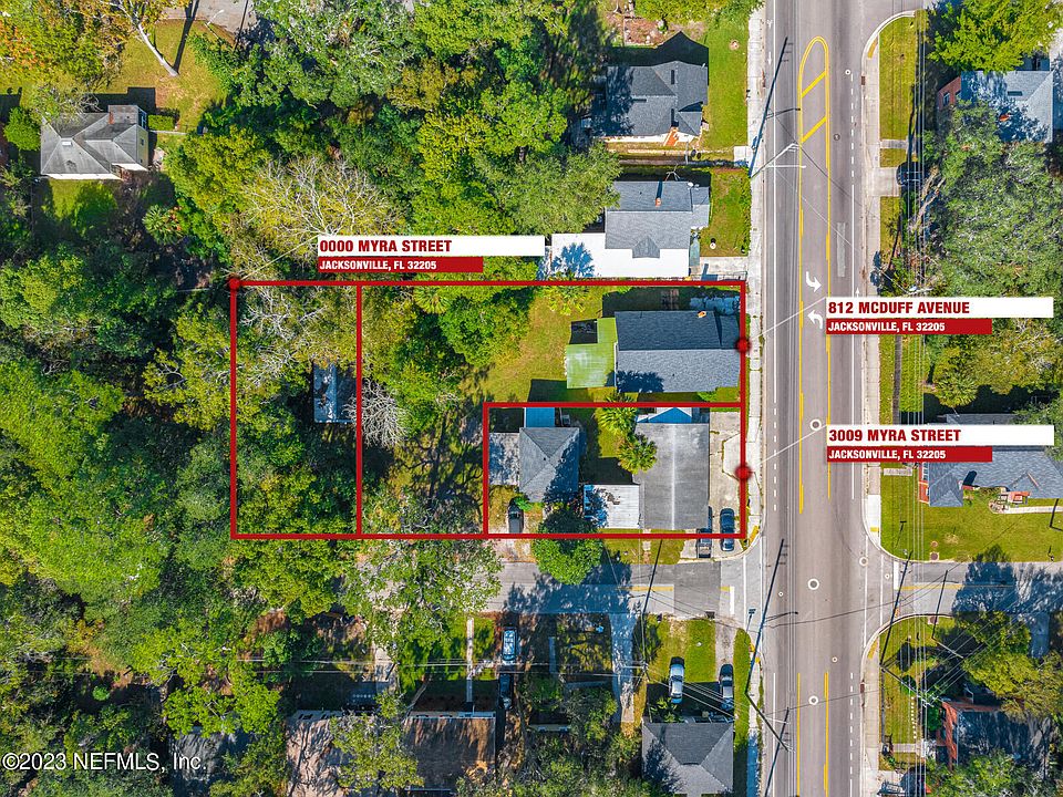 INVESTOR SPECIAL!! This listing of 2 dwellings on the corner of Myra & Mcduff in Murray Hill has all the potential! SF, Bedroom and Bath count includes both dwellings combined. The front dwelling is a concrete block 1-story dwelling with potential 1-BR,1/2-BA, in need of interior renovations. The back dwelling is a 2-story dwelling is 2-BR,1-BA, which is currently tenant occupied. The interior of the homes are waiting for your custom updating! The owner ALSO owns 812 McDuff Ave S and 0 Myra St (vacant lot adjacent to 812 Mcduff's vacant lot). Seller is willing to sell the whole corner as a bulk sale! AS-IS...CASH ONLY. Back unit is tenant occupied, month-to-month. 2023-11-21