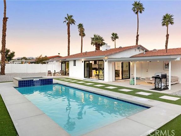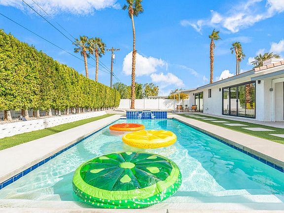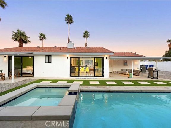Leave the big city behind and buy in Palm Springs ware your money buys you more house for the dollar. Spectacular completely renovated vacation rental or a Resort Home to enjoy..This four bedroom two bath home with newer pool and spa.. Turnkey furnished and ready to move into our currently operating as a resort rental and bringing in money. The open concept living room catches your attention with the porcelain flooring. Completely renovated kitchen with a new appliances and lots of quartz countertops. The main bedroom suite has its own patio that faces the pool and spa and luxurious highly upgraded bathroom. Designer decorated and ready to go making this a super deal.