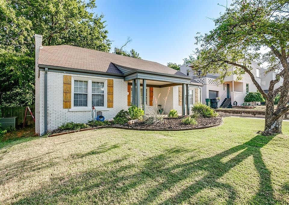 NEW ROOF INSTALLED! Absolutely adorable home in the charming Denniston Park neighborhood of OKC! You will love the light and airy vibe with big windows allowing plenty of natural lighting and creamy white walls for your decor to shine. Historic charm is present with inviting hardwood floors, built-ins, arched entryways and semi-barreled tray ceiling in the living room. The kitchen has been updated with refreshed painted cabinetry, new floor tile, updated backsplash and a designer vent hood over the gas stove. There is also a pantry which is a nice bonus! Two dining areas with a formal and a breakfast nook, which also has a cute built-in for your dishes! The primary bedroom features 2 nice closets, a 3rd closet space and a new ceiling fan, while the secondary bedroom has built-in bookshelves and lots of windows! The bathroom is so cute with the black and white tile and bright lighting! Out back, you will enjoy lots of trees, a new fence and gate and a fun fire pit area for entertaining! The detached garage is great for vehicles or makes a perfect workshop space. Minutes from everything that Urban Core has to offer and blocks from I-44, makes it easy to get around town.