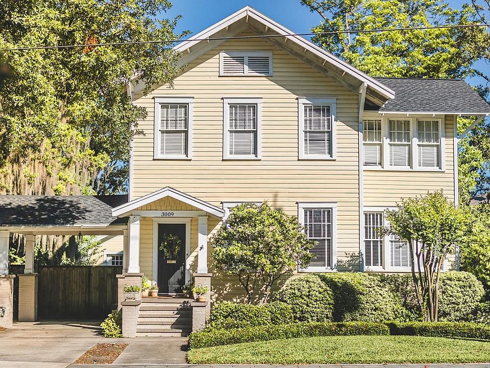 This beautifully updated Colonial offers abundant BONUS space and perfectly blends modern amenities with timeless historic charm. Located just two blocks from the waterfront in the heart of Avondale’s sought-after historic district, this home is full of character and style. Step inside to discover original heart pine floors, soaring ceilings, crown molding, French doors, and a cozy double-sided fireplace that adds warmth to the living and dining areas. The gourmet kitchen is a chef’s dream, featuring professional-grade appliances, leathered granite countertops, custom cabinetry, and a center island with bar-top seating. The adjacent laundry room offers additional floor-to-ceiling pantry storage for ultimate convenience. Outdoor living is just as impressive! Grill dinner on the side porch or host gatherings on the expansive screened-in back lanai. The fully fenced backyard feels like a private retreat, bordered by tall palm and oak trees. Downstairs, a full bathroom on the main level adds to the home’s convenience, especially if you choose to transform the main-floor sunroom into a home office, yoga studio, or even a private guest suite. Upstairs, you’ll find three bedrooms that share a charming full bathroom with a clawfoot tub. Two of the bedrooms open into a bright and versatile space—perfect for an office, playroom, or guest room. A custom walk-in closet, as large as a bedroom, offers exceptional storage and flexibility. Additional highlights include a beautifully landscaped front yard, a carport, and a detached garage. Enjoy the unbeatable location—close to the shops and restaurants on King Street, with parks, schools, and the riverfront nearby. This is historic Avondale living at its finest—don’t miss your chance to call it home!