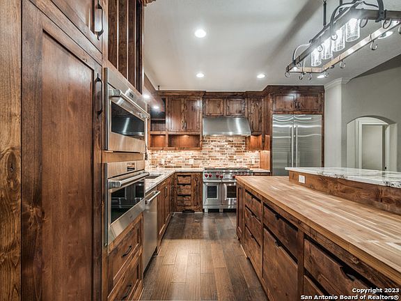 Schedule to come view this unique gem! This beautifully upgraded custom home has easy access to HWY 281. This home includes numerous high-end features. Custom cabinets and shutters throughout, Generac Home Generator, Wolfe brand appliances, under counter top lighting in bathrooms, custom shelving in mater closest, and more. The 3 acres are partially wooded and lend to privacy and Hill County views. Easy access to San Antonio, New Braunfels, Blanco, or Boerne. Shopping, dining & schools nearby.