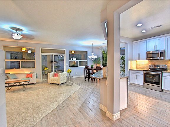 Want The Greens @ Seven Oaks Golf Course, but they're all dated, right? Not this one! Tastefully remodeled, three houses down from the clubhouse/pool/gym. WATCH LIFESTYLE/DRONE VIDEO AT: www.thegilliesgroup.com (might need to cut & paste into browser). Brand new kitchen cabinets & bathroom vanities w/ soft closing doors & drawers & new granite. Most desired floorpan in the community for it's split-wing design. Stellar Open kitchen, with brand new Samsung appliance package, Subway tile w/ USB chargers, tastefully updated fireplace with mosaic tile. Oversized 36 x 8 wood-looking tile & large custom baseboards. These are slick! New fans & dimmable LED lights. Massive 3 Car Garage with epoxy floors. Freshly landscaped, and be welcomed by your own calming water feature at entrance. Large covered patio provides further entertainment options. Private Master Bedroom/Bathroom, with 9 foot double vanity, garden tub, & huge walk-in closet. Those who appreciate quality & design will like this one! (55+ Community)