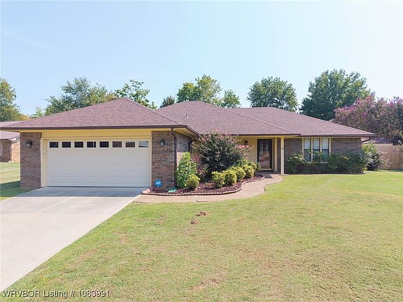 Great home in an established neighborhood in East Ft. Smith. Convenient to schools, shopping, churches, hospital, medical care and dining. Easy access to the Chaffee area. Recent updates include newer roof, newer dishwasher, microwave vent,granite kitchen counters, vinyl plank flooring in main areas and primary bedroom. Painted during updates. Enter the front entry into the family room. A fireplace with gas logs and a vaulted ceiling make for a roomy yet cozy space. The kitchen has ample eat in space for dining and a bar for casual dining or gathering. Through the kitchen is the laundry room with a walk in pantry as well as garage access. The split floor plan primary bedroom has a roomy walk-through closet and the ensuite has a newer walk-in shower. The secondary bedrooms are serviced by a hall bathroom. The private back yard has new fencing on two sides providing privacy for the inground pool with liner. The pool pump was just replaced. The covered patio offers a small changing room for the pool as well as dining space. The outbuilding provides storage for the pool and lawn equipment. This was home for the parents of current owner and is being made available for the next owner to move in and enjoy. Call today to schedule a showing!