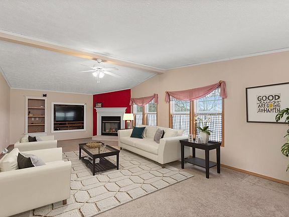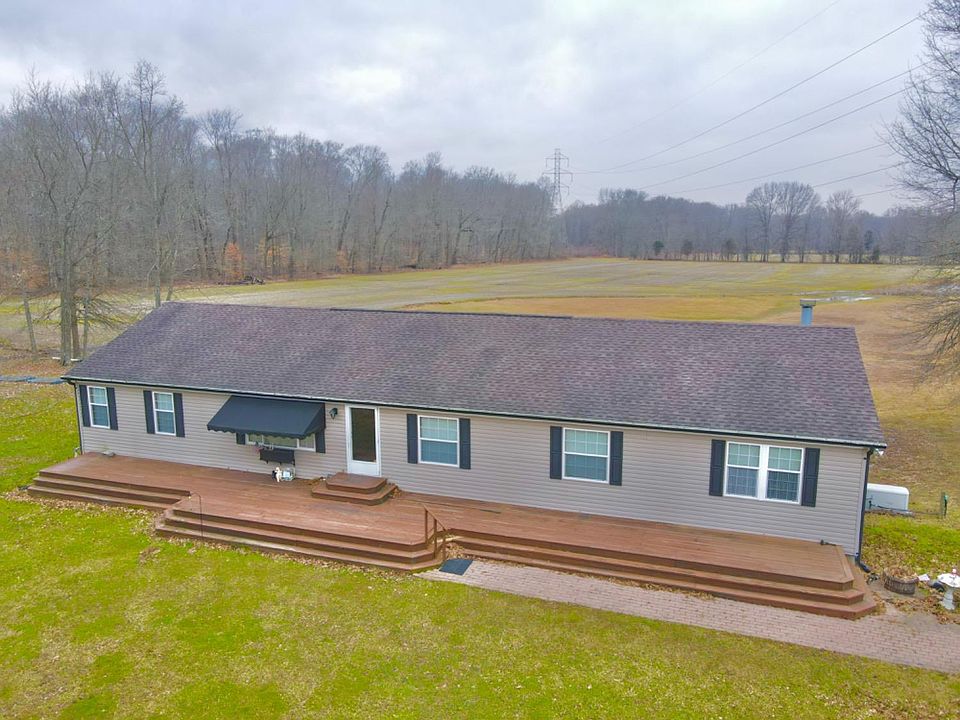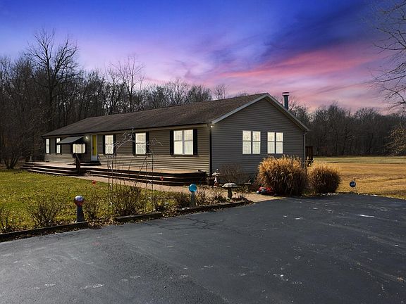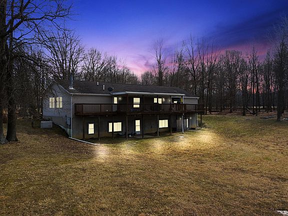 This secluded 4bdr, 2ba home w/walkout bsmnt sits on 5 acres & only 13 miles from I-275! Tons of room including an office, laundry, lrg kitchen/DR, lrg family room, and a rec room on the opposite end of home w/FP, and rear covered deck, & 30x40 pole barn w/ concrete floor! Don't miss out on this gem! Some interior pics are virtually stage.