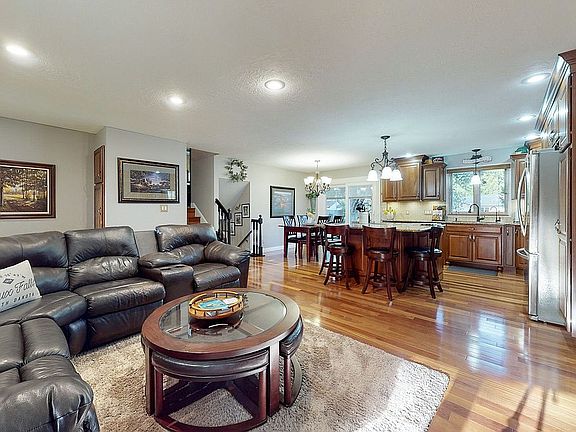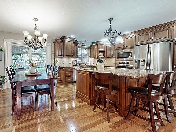 This multi-level 4-bedroom, 3 bath home is located in a family-friendly neighborhood with convenient walking distance to Oscar Howe Elementary School and Kuehn Park pool, tennis courts, walking path and golf course. The spacious and open main floor features a kitchen with Brazilian Teak hardwood flooring, custom cabinets, Cambria quartz countertops, Stainless Steel appliances, an expansive island with undercounter storage, and a dining and living room for family time and entertainment. The upper level has three bedrooms and two full baths. The master bedroom has an attached master bath and features a tiled walk-in shower and granite countertop. The lower levels feature a family room with fireplace, bedroom, full bath, exercise/playroom area, workshop, storage area/utility room and spacious laundry room with sewing/crafting area. In the backyard you will find a shaded composite deck and paver patio overlooking a gorgeous grass yard with wood privacy fence, mature trees, fenced in garden and a Rainbow Play System playset. Hardwired security camera's covering front and back, garage and kitchen areas. Heated garage with epoxy floor and 18' X 22' attached garage addition is a handyman's dream area with cabinets and workbench.