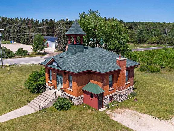 Run your business and live above it from the little red school house just north of Harbor Springs. This historical building has housed a catering company for the last 30 years. Wonderful, commercial kitchen, with all the amenities, in the lower level, including a full bath, and laundry and plenty of storage. The upper, second floor has hardwood floors, a small bar, and the original chalk-board from the old school days. This level has a half bath, a huge living space, and a walk in closet. A new roof was recently put on, and repairs of the masonry. This property has a ton of character! Options abound with this property, its location is just a few miles north of Harbor Springs, on the way to Good Hart and Cross Village, and only a bit further then to the sugar sand beaches of Sturgeon Bay, and then to Mackinac Island and the bridge. This location for an art studio, shop, cafe, restaurant, or just a personal office space is ideal.
