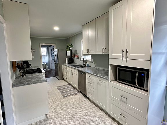 Back on the market, no fault of the seller! Cute, cute, CUTE!! This SW Topeka home features ALL of the charm as well as modern updates! Refinished hardwood floors throughout, large bedrooms, modern neutral paint colors and built in display cabinets in the dining room. Recently remodeled kitchen has tons of cabinet space, soft close doors/drawers, and stainless appliances including a gas stove worthy of a professional chef! Primary bedroom has double closets, including a walk in with built in drawers. Extra finished space in the basement is the perfect rec room or home gym. Enjoy the back patio with pergola and fire pit. Plenty of parking in the extra long driveway leading up to the spacious 2 car garage. Walk to local shops and cafes. Sewer line replaced in 2021. Inspection reports available.