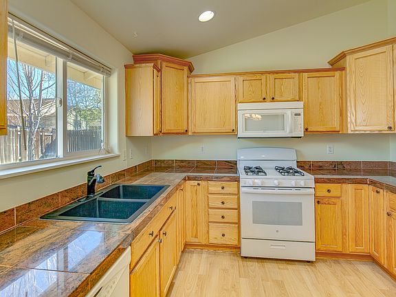 Charming 3 Bedroom 2 Bath single level home in SW Redmond. Abundant natural light from the large bay windows in the living room and featuring vaulted ceilings. The living space opens to the dining area and kitchen with tile counters, gas range and pantry. Keep cool in the master bedroom with its ceiling fan, his and her closets and master bath with double sinks. The dedicated laundry room has great storage with cabinetry and full closet. Plenty of space in the double car garage. This home has a 2 year old furnace along with a/c to keep you comfy during any season. Fully fenced back yard, large front yard and sprinkler system. Come make this sweet house your home.