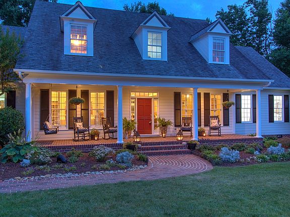 Sprawling Cape Cod with covered front porch is Southern Charm at it's finest! formal rooms, office, oversized fireside den open to gourmet kitchen and breakfast area. Main level master retreat with custom bath and walk in closet. Upstairs features 3 bedrooms with own baths, exercise room, large loft/bonus. Expansive 1.80 acre level lot with fenced rear yard. Screened porch w/FP. Neighborhood access to running/biking on Greenway, Bur Mil Park w/pool, lakes.