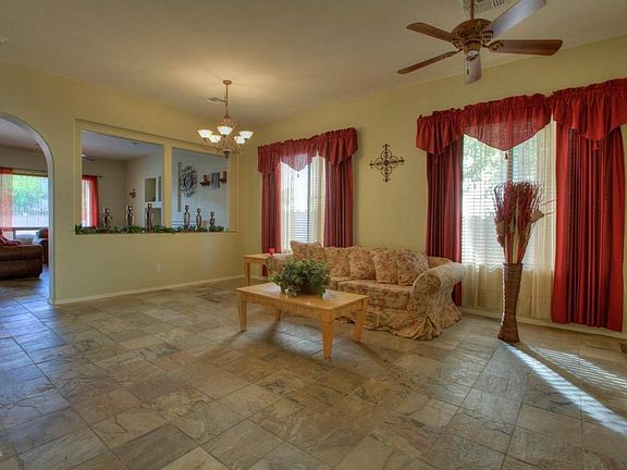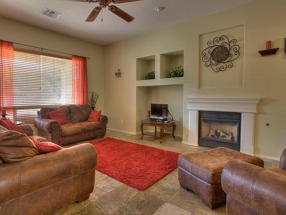 Splish, splash, bring your swimsuits for friends & family to enjoy your sparkling pool and backyard with real grass that backs up to a pretty desert wash. The interior features all the upgrades you are looking for, yes, granite slab counters, stainless appliances, extensive slate flooring, upgraded carpet in bedrooms, formal living area plus a family room with a fireplace. This single level home has custom touches through out along with 4 bedrooms plus a den makes it the perfect family home. Come see.