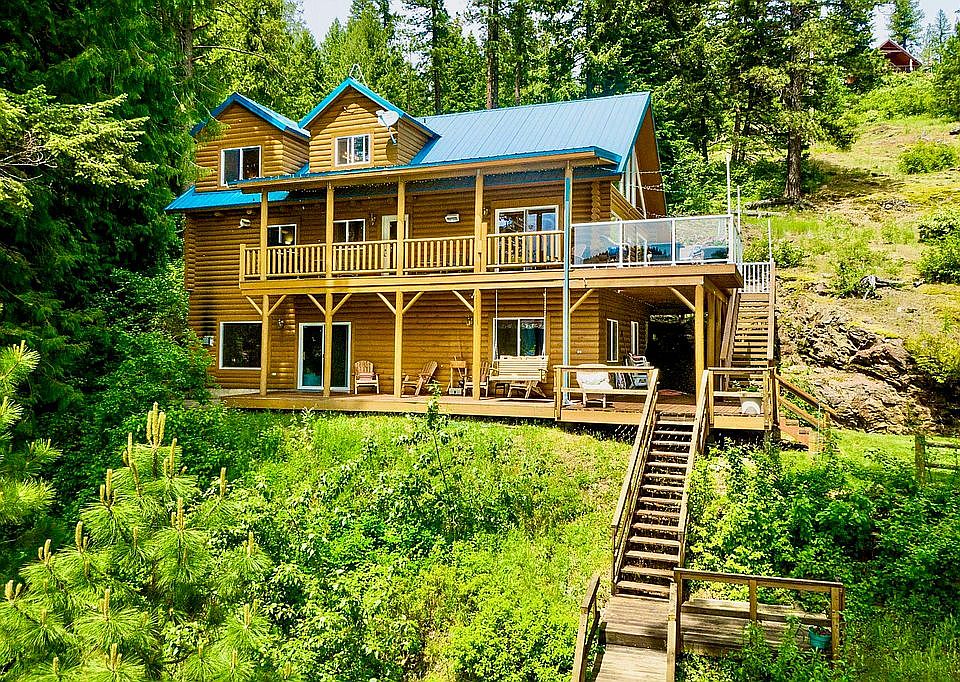 Those visions of a log home situated on an alpine lake can now be yours. First time ever on the market this well-appointed lake oasis awaits. Open main floor, soaring ceilings, wood & stone flooring, inviting living room, wood burning stove, dining area & updated kitchen w/granite & SS appliances. Conveniences include instant hot water dispenser, laundry chute & high-speed internet. Upstairs experience the spacious master suite, walk in closet, double sinks, garden tub & dual headed shower. The main floor features 2 bedrooms and a full bath. In the daylight basement enjoy the 9-foot ceilings, family room, 2 bedrooms, full bath & laundry. Outside the wrap around decks on multiple levels for relaxing & entertaining await, 140 feet of waterfront & your own private dock! Don't wait