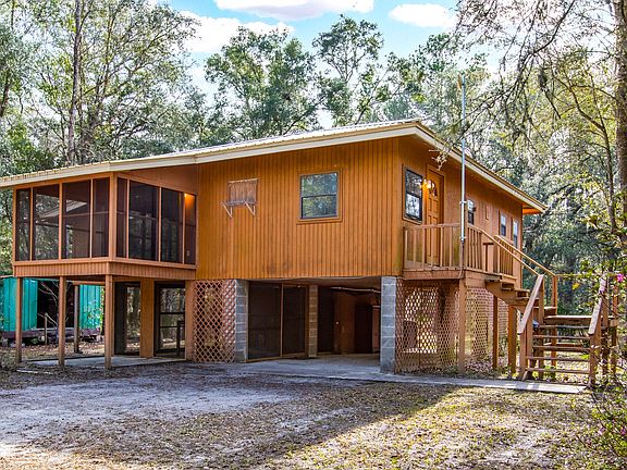 If you're looking for a cozy cabin in the woods here it is! This 2 bedroom 1.5 bath home sits just one block over from the Suwannee River. Downstairs screened room has a bedroom and half bath. Upstairs you'll find the master bedroom plus a bonus room that could be a 3rd bedroom or office space (no closet) and a full bath. Multiple screened porches are the perfect spots for watching the deer and turkey that come through often. With no neighbors in sight this is the perfect spot to call home! From 129 south just before crossing the Santa Fe River turn right on 296th Street, continue straight to 81st rd- turn left, follow it around and it becomes 81st loop, Veer left at first loop- home ahead on left