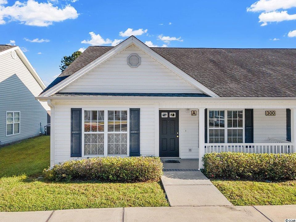This is an affordable opportunity in Country Manor Estates located off of Four Mile Rd in Conway. This semi-detached property has 3 bedrooms, 2 bathrooms, a living room dining room combination, a front porch, and a screened back porch overlooking a small pond. All appliances convey including the washer and dryer! The HOA is very low and includes the lawn maintenance and yearly pressure washing of the home.
