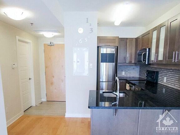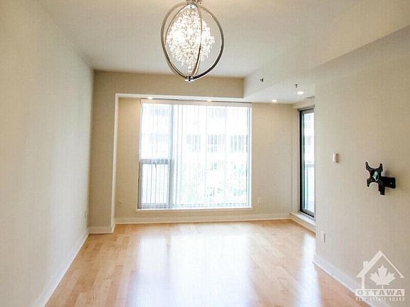 Move in ready. This luxury 1 bed, 1 bath condo with underground parking (not the mechanical spots) and locker has a private balcony with stunning views looking over Lebreton Flats, the War Museum, and the Aqueduct / Bridge. The Ottawa River and the Pimisi LRT are just steps away. You'll be living in the best area of downtown. Building amenities include concierge service, outdoor pool oasis (opening later this summer), a rooftop BBQ with lounge chairs, private party room, an indoor gym, locker and shower, and storage area. The open concept living/dining room features gourmet kitchen, SS fridge, stove, dishwasher, microwave hood fan, and in suite stacked washer/dryer; 9 ft. ceilings, deep bathtub, floor to ceiling windows, quartz countertops and engineered hardwood floors throughout. Must see! First and last month deposit, rental application & credit check required. No smoking, small pets allowed.