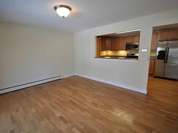 Clean and nicely updated 1 bedroom 1 bath unit boasts maple kitchen cabinets, stainless steel appliances and wood laminate floors in living room and kitchen. Balcony off living room and carpeted bedroom. Washer and dryer in unit. Rent includes heat, water, garbage, and generous storage unit. Bonus is 1 car garage space. Ideal location tucked away from traffic, yet only a very short walk to the train. No pets.