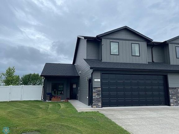 Come check out this quality built beautiful charcoal gray twinhome with everything you need on the main floor. NO EXTERIOR STEPS! This twinhome was built in 2021 by Zach Construction and still looks like the day it was built! Features include: main floor laundry, in-floor hot water heat, open floor plan, beautiful kitchen with Granite island, master suite w/bath, 2 additional bedrooms upstairs for family or company with their own bathroom, 2-car finished & heated garage, totally fenced-in yard, storage shed & patio. Watch the sunset from your backyard! Must be seen to appreciate.