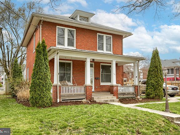Solid, all brick New Cumberland Manor 3 story with gigantic (18'X42'), 2 story, detached garage w/14 ft door & enclosed loft office. Move-in ready with Hardwood, updated kitchen, formal dining, main level laundry, 2 full baths. 3rd floor playroom, or addl bedroom, or ample storage. Picturesque front porch, and private, fenced backyard with patio. Radiant gas heat.