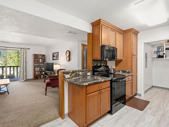 WELCOME HOME TO EASY CONDO LIVING! This beautiful & well maintained 2nd floor, 2 bedroom, 2 bath condo is move-in ready! The kitchen has been updated & has newer cabinets, counter tops, flooring and appliances-stainless steel refrigerator new in 2024. Laundry area is off the kitchen. You'll find a large living room w/a sliding door out to your private balcony, which looks out to the treed green space. Large primary bedroom w/ensuite bathroom has 2 closets, extra shelving & newer glass shower door. Central A/C. The building is secured access entry w/an intercom system, 1 assigned space in the heated parking garage-space is right across from the elevator & another assigned space in the parking lot. There's additional storage in the garage & storage just across the hallway of the unit. Community features include a sauna, park like exterior setting & a community room. Located close to Benefis West, The Peak Health & Wellness Center & next to the Hylande City Park. Listed by Jody Jakes.