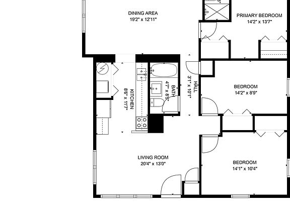- Combination Kitchen/Living, Floor Plan - Traditional