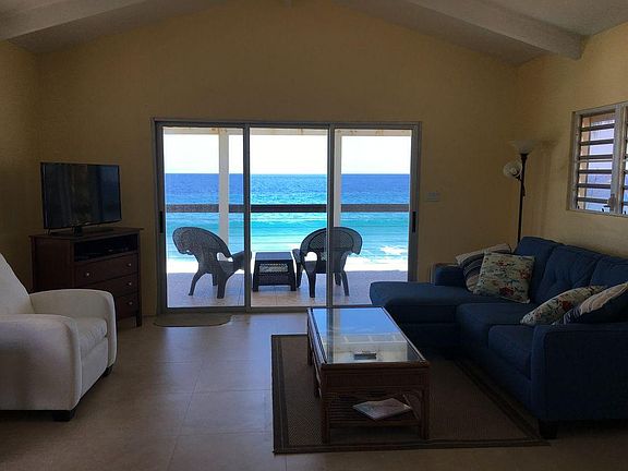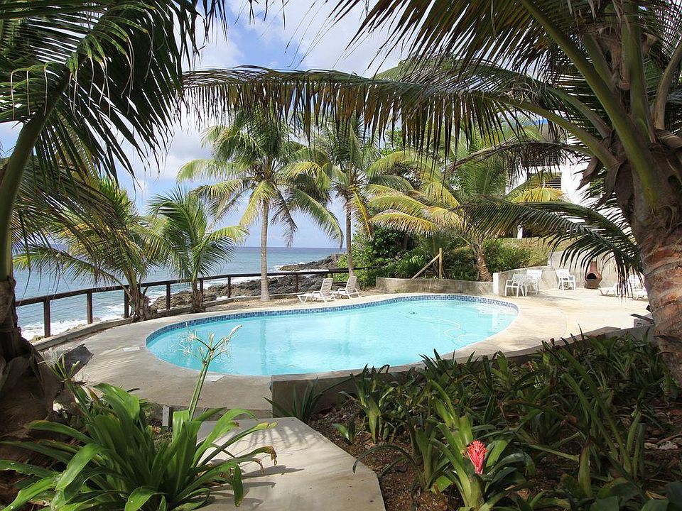 This is a unique offering; buy one building and get TWO one bedroom condo units! This is in the Seaclusion Condo Complex on north shore. These rent very well on the vacation rental market and have 5 star reviews! This building is right on the ocean and close to Cane Bay and all the great restaurants in that area. Laundry room in the building, too! Top unit comes furnished; bottom one does not. Total sq. ft top unit (unit 302) = 806; bottom (unit 301) = 962. AC in upper unit, but not lower. Gas cook tops, tankless hot water, nice pool on premises..