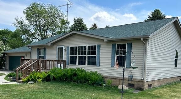 Small Town Hideaway in De Graff! Affordable, attractive and well maintained 3 bedroom, 2 bath Schultz double wide with attached breezeway and double garage. Includes washer/dryer, stove, refrigerator, dishwasher, electric fireplace and a Kinetico water system. Investigate today at $109,900