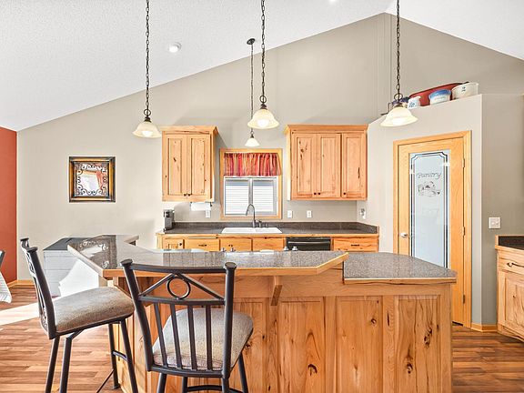 Center islandInground sprinkler systemGranite topVaulted ceilingOpen floor planCustom hickory cabinetsPrimary suite