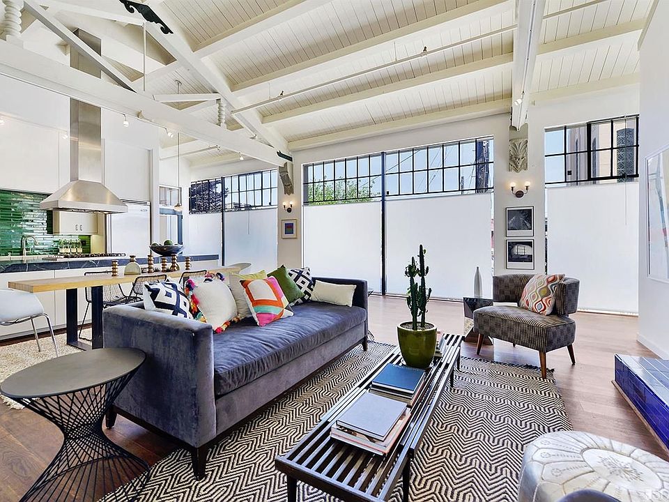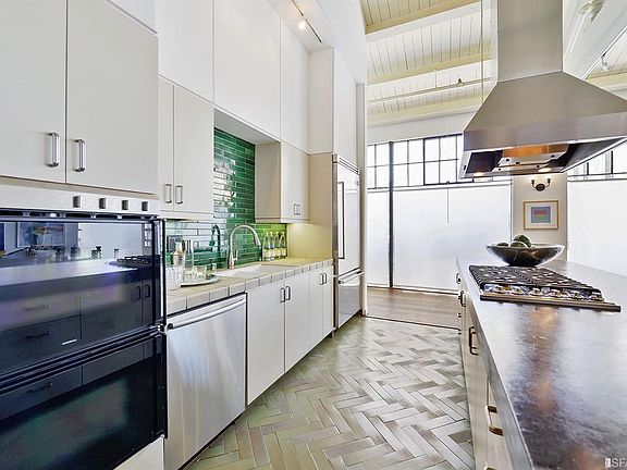Rare and wonderful live/work loft in The Portico in the heart of Oakland's historic warehouse district in Jack London Square. 3BR/2BA light filled corner unit, fantastic industrial architectural details including two walls of windows, vaulted 18 ft ceilings in the great room, plank wood floors, fireplace in living room with custom hearth featuring Heath tiles, chef's kitchen with a soapstone island, Viking and Gaggenau appliances and beautiful details. Three bedrooms including the master suite, two renovated bathrooms plus light-filled den, an office with built-in cabinetry, laundry in the unit, parking, shared atrium, and gated entry.