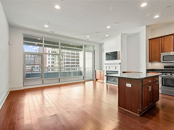 Welcome to your new home! This 1 bed, 1 bath condominium in Downtown Pittsburgh is ready for you to move in! Through the entrance you are greeted with beautiful hardwood floors, 10 foot ceilings, and tons of natural light. The unit features many lavish finishes such as in ceiling speakers, built-ins, wine cooler and a fireplace. The large open concept is perfect for entertaining and leads directly to the covered outdoor patio complete with gas grill hookups and a cathedral view. The kitchen includes stainless steel appliances, a wine cooler, shaker cabinets, and stone countertops. The large master bedroom and en-suite complete the unit. Secure building with 24/7 staff. Close to all major downtown attractions! Many common area updates are being completed!