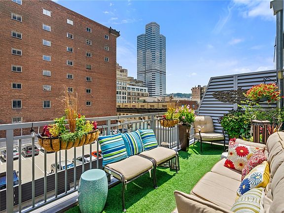 Luxury Living in the heart of Downtown Pittsburgh! #718 is a Penthouse condominium with updates galore. This unit includes 2 bedrooms, 2 full baths, Brazilian cherry wood floors and smart home capabilities. The kitchen has been upgraded to include under cabinet lighting, a Blanco kitchen sink, stainless steel appliances and a gorgeous granite countertop. Step out onto the balcony (your little oasis) which includes a 20 foot open air space and views of downtown Pittsburgh. This particular unit has the option to include a staircase on the balcony for rooftop entertainment at the buyer’s expense. Hunter Douglass silhouette remote controlled windows add an abundance of light and 10-foot ceilings create plenty of space to feel right at home! 3-year tax abatement program. Fitness studio, courtyard, concierge, 24/7 security and lounge are just a few of the amenities you can enjoy at 301 5th Avenue! Within walking distance to the Cultural District, Strip District, PNC Park and so much more.