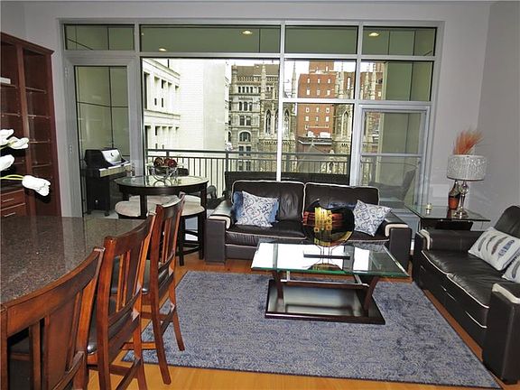 Dramatic 2 bedroom condo unit with upgraded finishes in Piatt Place. Gleaming wide plank flooring, 10' ceilings, great city views. granite center island kitchen with stainless steel appliances and handsome cabinetry. Wall of windows with transoms and door to large private covered balcony. Two bedrooms plus full bath with ceramic tile shower, separate soaking tub, cherry cabinetry, dual sinks and granite counter. Piatt Place building amenities include concierge service, 24-hour security, open air center courtyard, integral parking garage (one parking space is included in Oliver Garage), multipurpose room and exercise room. Sophisticated entry lobby and reception area. Location, style and grace all in one property.