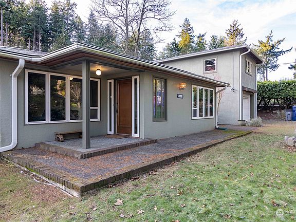 Charming bungalow in desirable Cap Sante neighborhood. Spacious living room with wood burning fireplace, hardwood floor and partial water view. Kitchen features tile flooring and countertops, banquette and built-in hutch. Large dining room for ease of entertaining. Master on main floor with full bath and 2 closets. Welcoming family room features vaulted exposed beam ceiling and built-in bookshelves surrounding a gas fireplace. Private cozy second bedroom over garage features hardwood floors, 3/4 bath and view of the sound. Tastefully landscaped yard features a coutyard, patio and 2 roomy storage buildings.