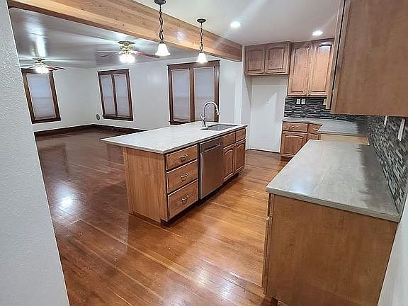 • Interior Features: New Bath, Windows- Updated, New Kitchen, Flooring- Wood, Ceiling Fans, Countertops- Solid Surface