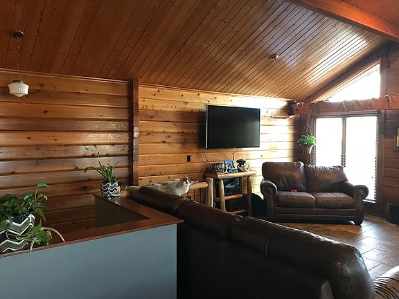Realtors Welcome!! Cozy, clean, one of a kind 4 bedroom 2 full bath 2656 sq.ft. Cedar LOG HOME with updated wood and tile flooring, appliances, water heater, painting, roofing, windows and seamless gutters. The main floor has 2 entryways, 2 nice sized bedrooms, bathroom, main floor laundry, kitchen (with lots of storage space) and a nice sized, dining and living area to allow for entertaining family and friends in front of a cozy fireplace. Downstairs you will find a large rec. room with a wood burning stove, storage room, 2 more bedrooms, bathroom with a shower and jacuzzi tub and a space to finish as a kitchen, bar area or put in another bedroom. Outside is a large wrap around deck and a large, insulated 26 x 40 4 car garage. The 2 lot yard offers many mature trees and an underground sprinkler system. ALL REASONABLE OFFERS WILL BE CONSIDERED!!
